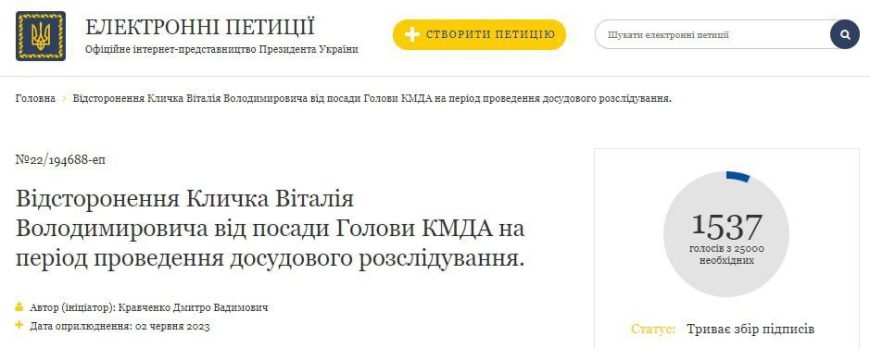Автор петиции некий Кравченко отмечает, что именно на КГГА возложены обязанности по обеспечению жизнедеятельности Киева и гражданской защиты. Отстранение мэра Кличко должно обеспечить объективное расследование.