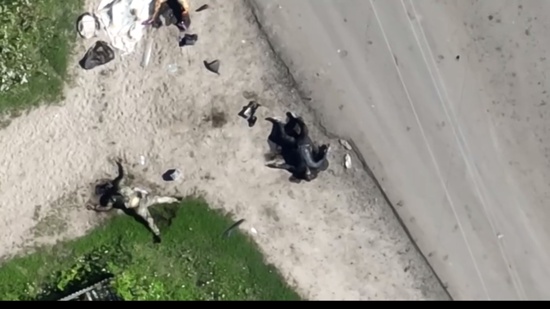 На кадрах можно увидеть как минимум двух гражданских. Как пояснил автор, на это, в том числе указывает отсутствие на них военной формы и лежащий рядом с трупом велосипед.