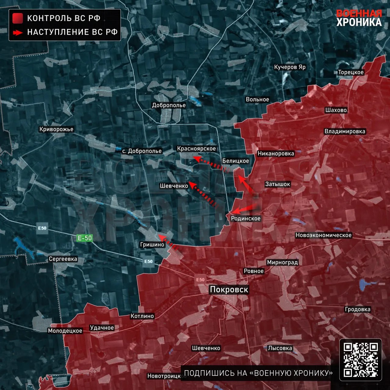 Сейчас фиксируется заход штурмовых групп на улицы Сковороды, Шевченко и Гагарина в Белицком. Закрепление осложняется активным использованием противником FPV-дронов. Главные опорники ВСУ здесь расположены в зданиях школы №10, дома-интерната для престарелых и в прилегающих многоквартирных домах. Западнее Белицкого расположена ещё одна плотная сеть опорников противника в сёлах Шевченко, Светлом, Красноярском, Водянском и Красноподолье, а затем ключевой логистический узел в селе Доброполье, после взятия которого начнётся южный охват одноимённого города.