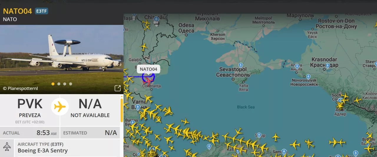 Boeing E-3A Sentry, базирующийся в Греции, активно сканирует западную часть акватории.