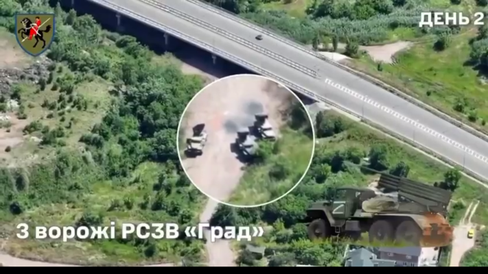 Две ракеты M30A1 GMRLS c вольфрамовыми шариками прилетели стразу по трем РСЗО «Град» ВС РФ в Донецке. Установкам были нанесены тяжелые повреждения, у двух «Градов» даже воспламенились направляющие, что вызвало самопроизвольные пуски ракет.