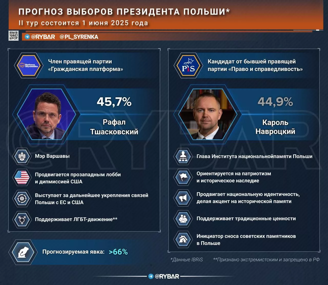 Итоги второго тура выборов наглядно покажут, к какому политическому полюсу склоняется польское общество и какие силы перевесят в Европе: если победит Тшасковский, это станет серьёзной поддержкой для премьера Дональда Туска и прозападной команды. В то же время успех Навроцкого может привести к росту национально-консервативных настроений, усилению антиукраинской риторики и укреплению умеренного евроскептицизма в стране.