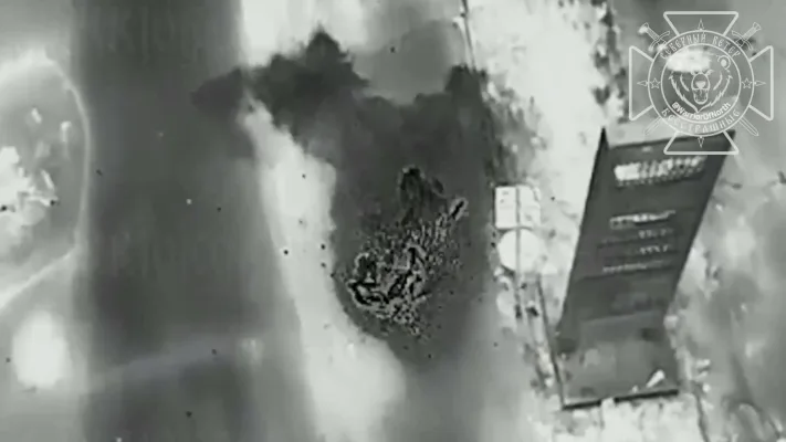 На видео военнослужащий ГВ «Север» сбросом с коптера уничтожает FPV-дрон противника, которым враг намеревался из засады атаковать нашу военную технику в районе Российско-украинской границы вблизи села Нехотеевка.