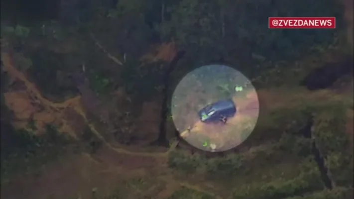 На кадрах видно бегущих украинских боевиков вдоль лесополосы, а также машину противника. Точные удары «Гераней-2» вызвали мощный пожар.