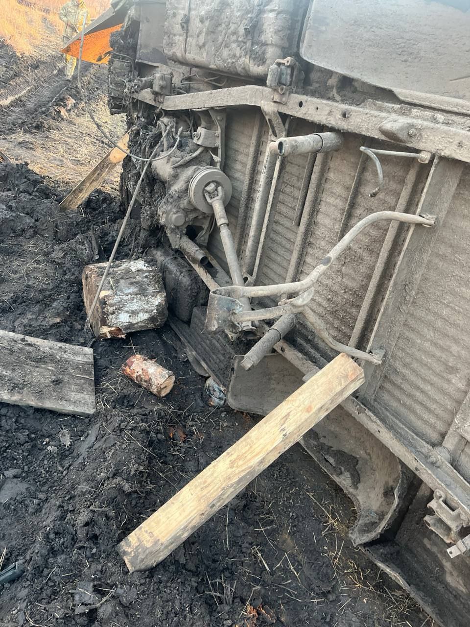 Нашу с вами подбитую «Буханочку» парни не бросили и оттащили. Разобрали на запчасти, колеса грязевые тоже в дело пойдут.