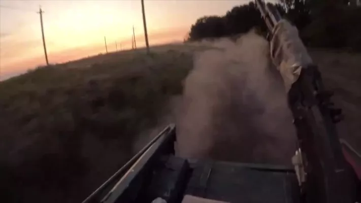 Перемещаясь на пикапе бойцы заметили вражеский FPV-дрон. Сидевший в кузове попытался сбить беспилотник огнем из автомата, но попасть по нему не удалось. Спустя несколько мгновений украинский БПЛА догнал наших ребят и подорвался недалеко от машины.