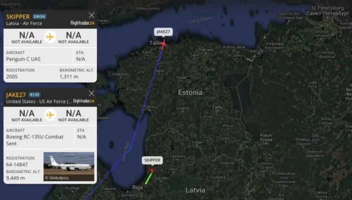 Американский БПЛА Boeing Rivet Joint RC135U (JAKE17) вылетел из Великобритании в сторону Баренцева моря. Над территорией на высоте 1300 метров находится другой беспилотник — Penguin, который также задействован в разведке.