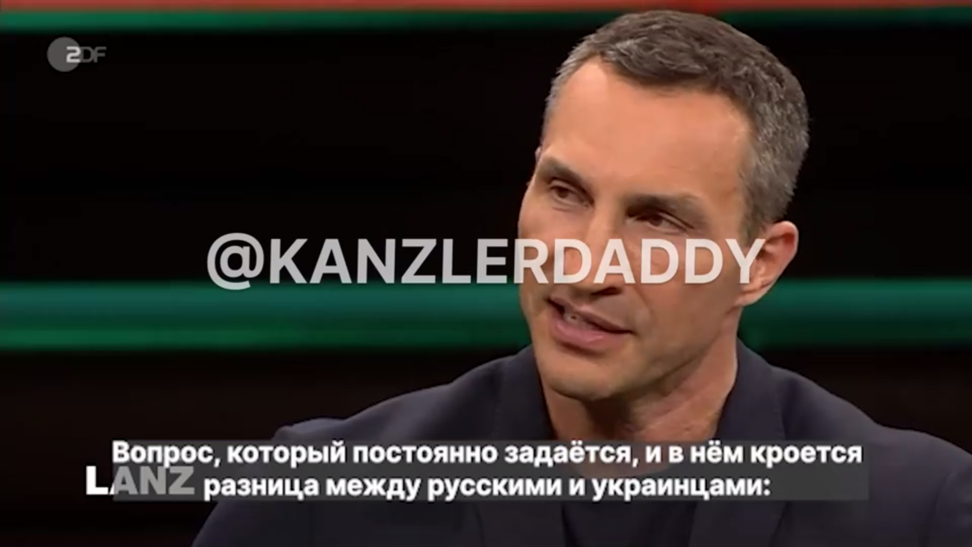 На немецком телевидении брат киевского мэра заявил: «Я не готов умереть за страну. Я готов жить за неё. Это сложнее, чем умереть».