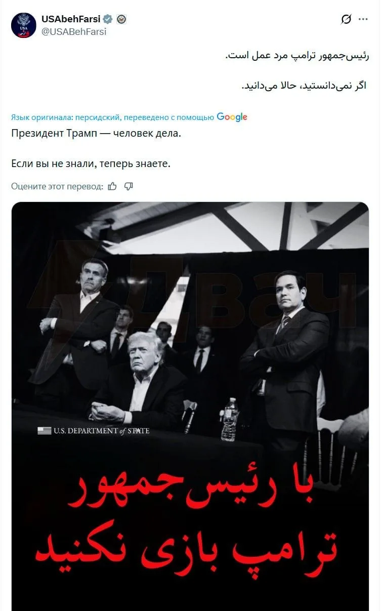 Иноязычные аккаунты Госдепа США опубликовали одинаковые сообщения на русском и персидском: