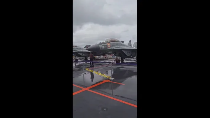 Видны истребители МиГ-29К/КУБ и вертолет ДРЛОиУ Ка-31