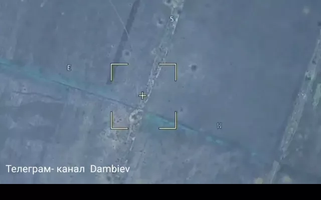 Прилет русской авиабомбы ФАБ-500 с модулями планирования и коррекции (УМПК) по опорному пункту противника.