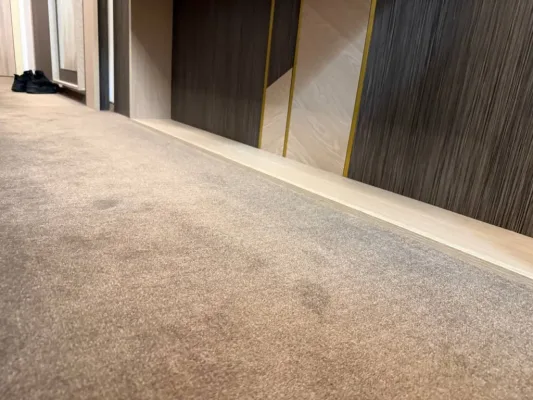 - Пол должен быть идеально ровным. Кварцвинил гибкий и повторяет рельеф. Если есть неровности, то на этих местах могут появиться потёртости. Придётся либо выравнивать, либо смириться.