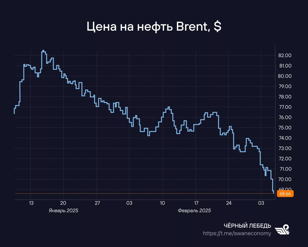 Баррель нефти Brent впервые с сентября прошлого года упал ниже 69 долларов. Бочка WTI также пробила уровень в 66 долларов. По нефти Urals средняя стоимость по году оценивается как 64,84 доллара. Но Минфин РФ ориентируется на 60 долларов, что предполагает возможный рост дефицита бюджета, так как изначально была сделана ставка на 70 долларов.