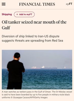 Груз принадлежал турецкому производителю нефти Tupras. Издание Tasnim сообщает, что судно было взято под контроль военнослужащими Ирана.