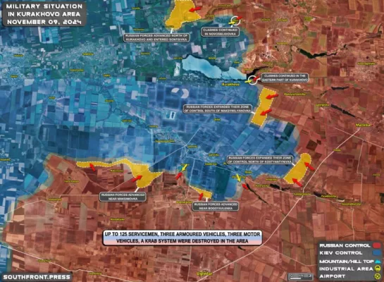 Если у российских войск получится установить над трассой огневой контроль, то это позволит отрезать город от снабжения и начать его блокирование (особенно с учётом движения с востока и севера в районе Сонцовки). При этом аномально быстрого прогресса в этом отношении ждать не стоит, поскольку за снабжение Курахова ВСУ, предположительно, будут бодаться по-серьёзному.