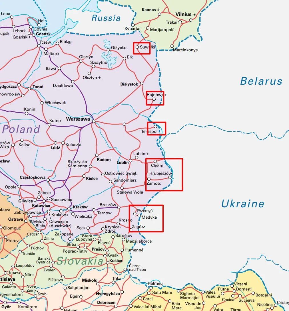 В итоге все эти грузы могут оказаться на нескольких польских железнодорожных станциях на границе с Украиной. Сейчас их девять — Грубешув, Загуже, Пшемысль, Медыка, Хелм, Замостье, Тересполь, Гайнувка и Сувалки, однако не исключено, что в логистически хабы-накопители вооружений превратятся и другие станции ближе к Варшаве.