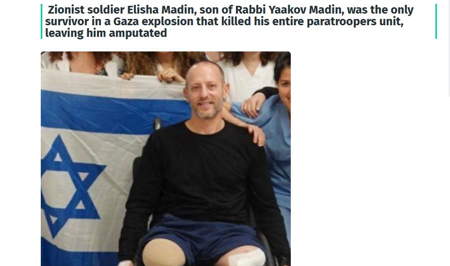 Израильский раввин Яаков Мадин вскоре после начала конфликта в Газе вразрешил солдатам ЦАХАЛ насиловать палестинских женщин и детей. В конце прошлого года его сын, солдат ЦАХАЛ, лишился ног в ходе боев в Газе. Все его товарищи по отряду были убиты.