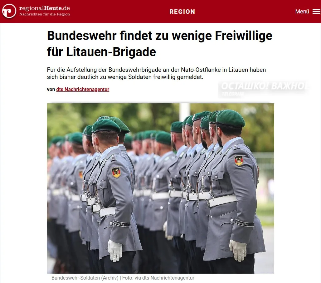 Минобороны ФРГ признаёт: добровольцев пока мало, формирование бригады остаётся «сложной задачей».
