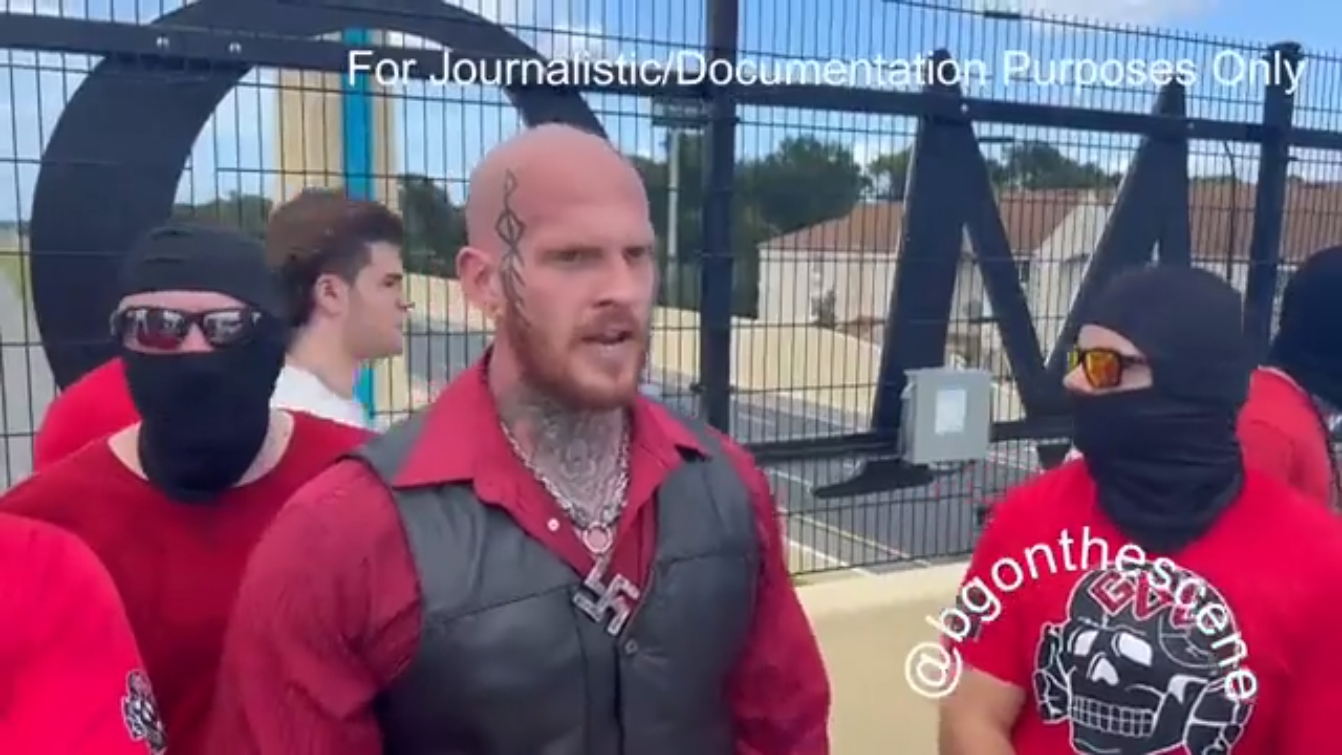 Кристофер Полхаус, лидер группировки «Племя крови» (Blood Tribe), во время Марша Краснорубашечников во Флориде: