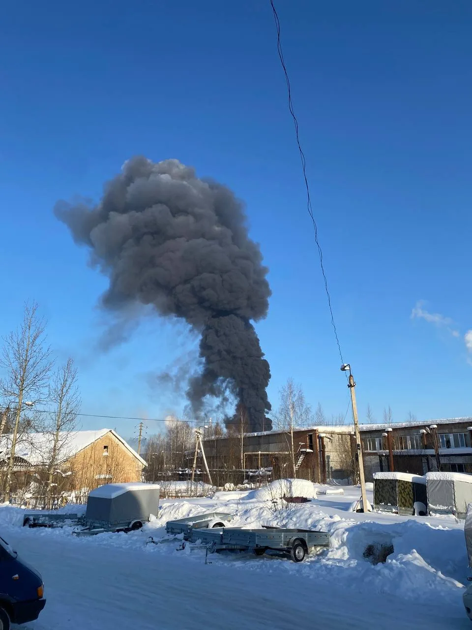 На видео слышна работа мобильных огневых групп, однако часть беспилотников достигла своей цели — на объекте фиксируется крупное возгорание.