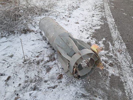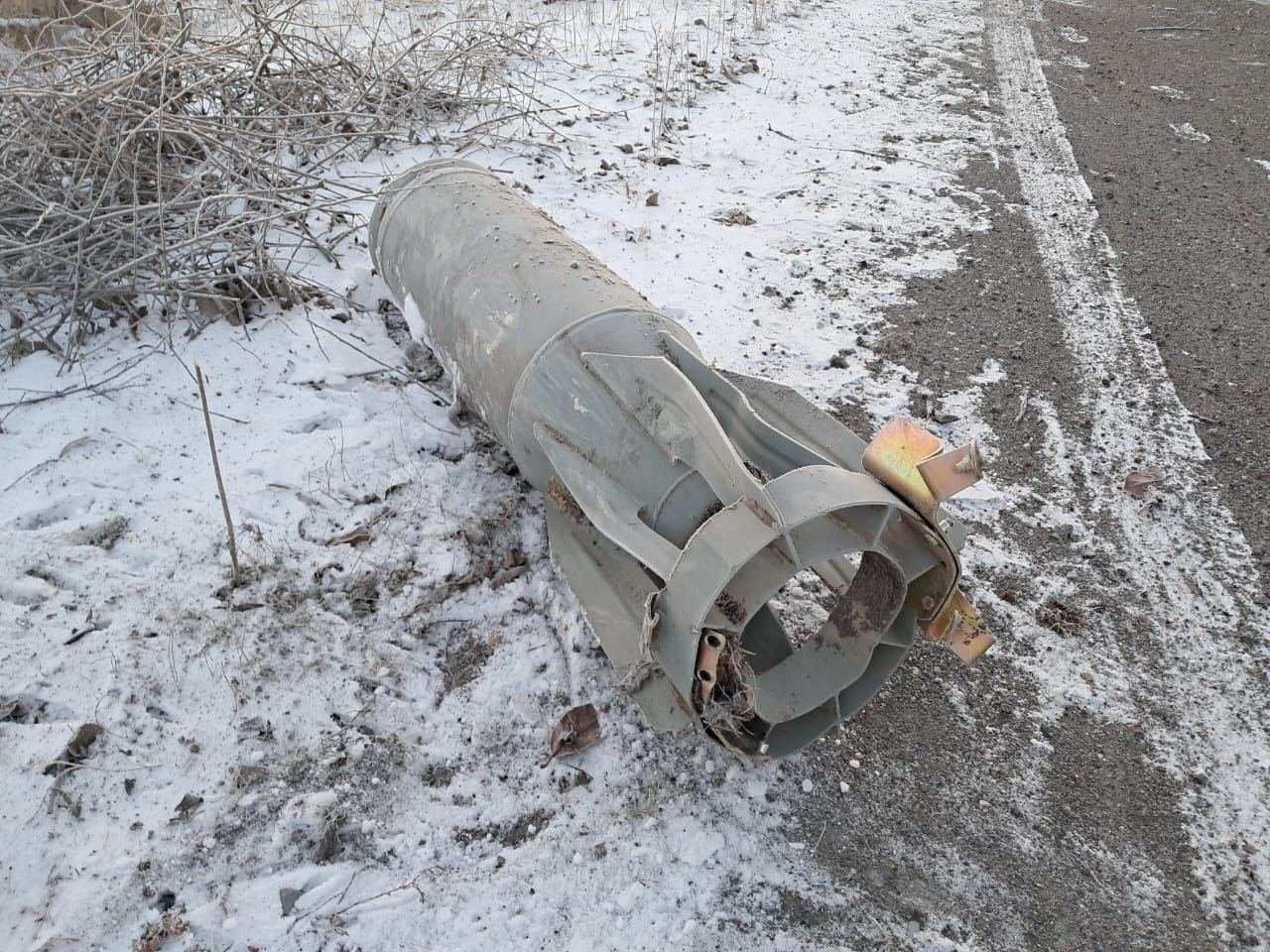 Несработавшая авиабомба ОФАБ-250, оторвавшаяся от своего УМПК в результате ударов по Бериславу в Херсонской области. Сохранились лишь характерные остатки задних килей.