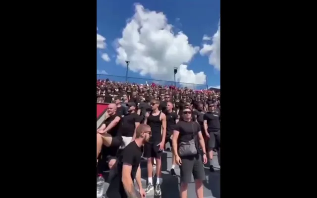 На стадионе в Ровно (Западная Украина) фанаты устроили откровенную неонацистскую демонстрацию. Перед началом футбольного матча трибуны скандировали лозунги о «великой Украине» и синхронно поднимали руки в характерном нацистском приветствии. Видео с места событий распространили боевики одиозного формирования «Азов»*.