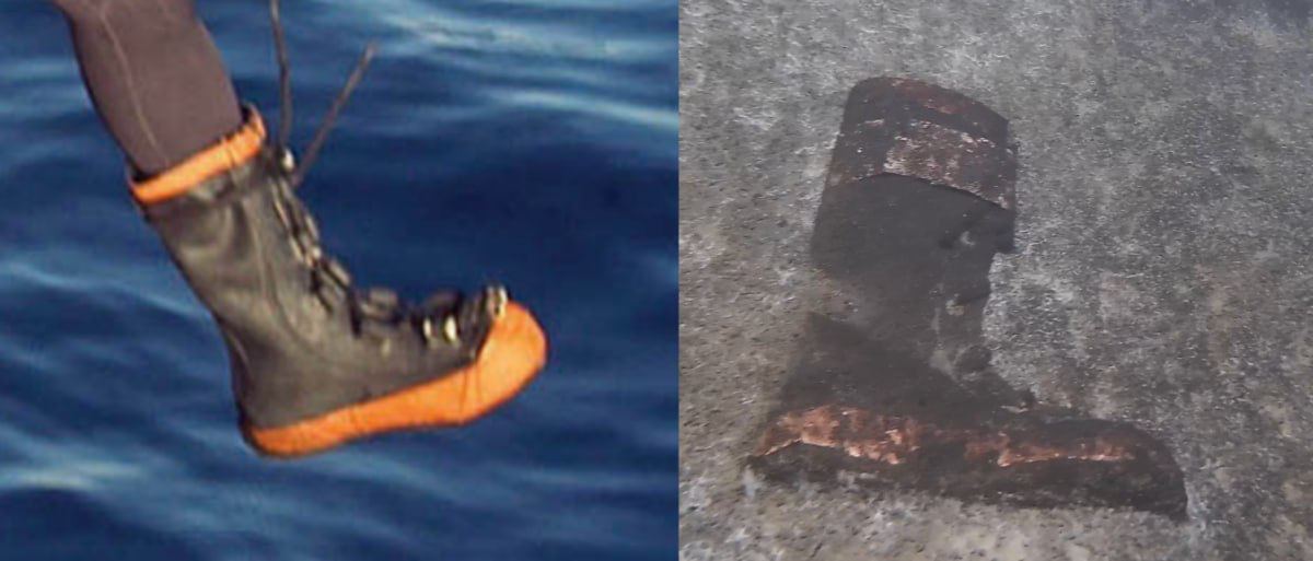 📝 «Неожиданно на экране появился странный объект. Это были черно-оранжевые дайверские ботинки. Grayzone определила модель, которая очень похожа на этот ботинок, она используется ВМС США и коммерческими дайверами. В подобных ботинках были замечены и дайверы ВМС Украины», – говорится в сообщении.