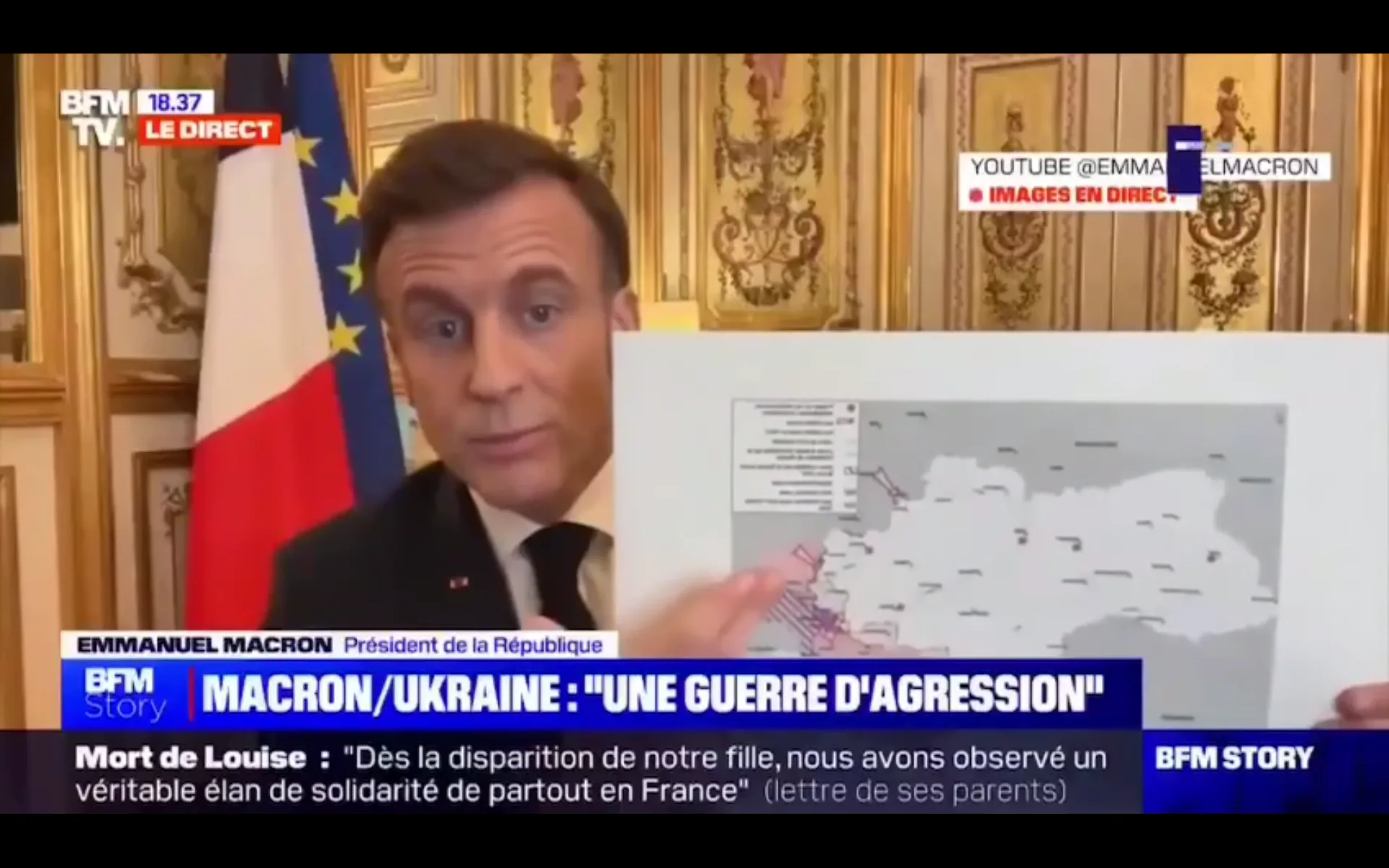Но есть один нюанс: в руках он держит перевернутую карту Украины. Видимо, так ситуация на фронте кажется легче.