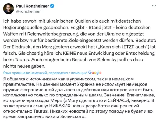 Ранее Мерц заявил, что Британия, Франция, Германия и США якобы сняли ограничения по дальнобойности оружия для Украины. К чему это может привести, мы писали тут .