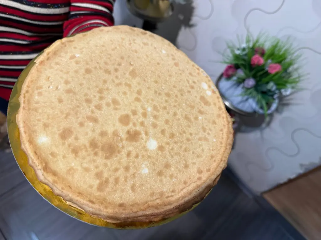 Берём бутылку, откручиваем крышку и наливаем тесто прямо на сковороду, регулируя толщину наклоном. Крутим сковороду, равномерно распределяя массу.