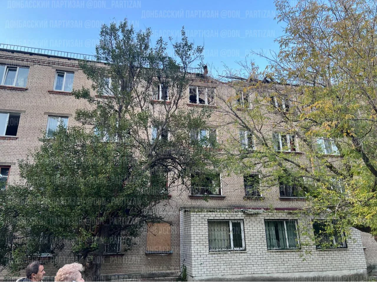 Попадание пришлось в крышу четырёхэтажного многоквартирного дома по пер. Школьный, 2. Повреждена кровля и выбиты окна. Жертв и пострадавших среди гражданского населения нет.