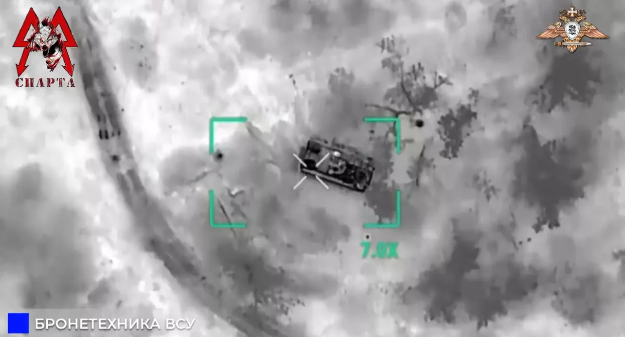 FPV-дроны «Спарты» демонстрируют свою эффективность в ночных условиях, нанося точное огневое поражение бронемашине противника, взрывая её и оставляя штурмовое отделение ВСУ без шансов на спасение. Украинские националисты-штурмовики были также уничтожены, пытаясь эвакуироваться из этого места.