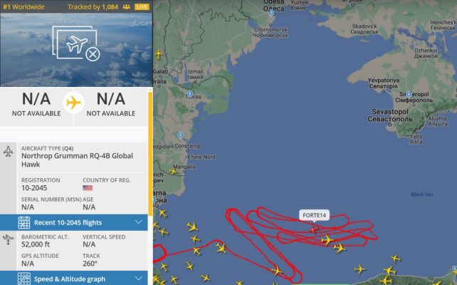 В данный момент машина дежурит в воздухе юго-западнее Севастополя.