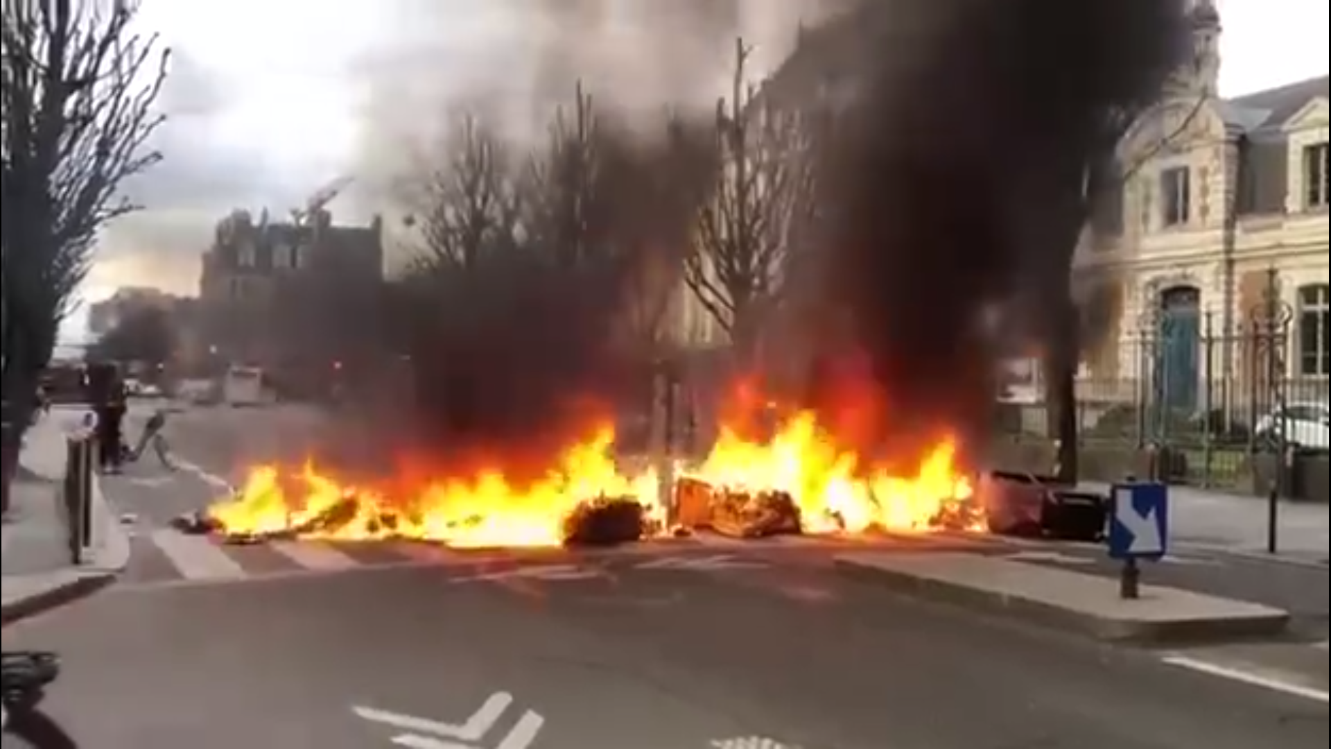 Пылают баррикады в Ренне и Генгане, рабочие заблокировали ж/д пути Лионского вокзала, митинги идут на площади в Марселе.