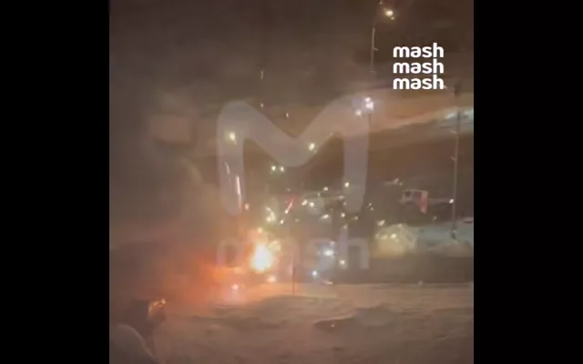 Со слов очевидцев, автомобиль загорелся после столкновения. Потом начался салют. Движение в сторону области перекрыто.