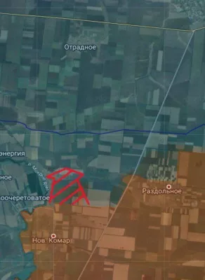 Севернее Нового Комара наши подразделения вышли в направлении Отрадного к балке, идущей к западу от Раздольного.