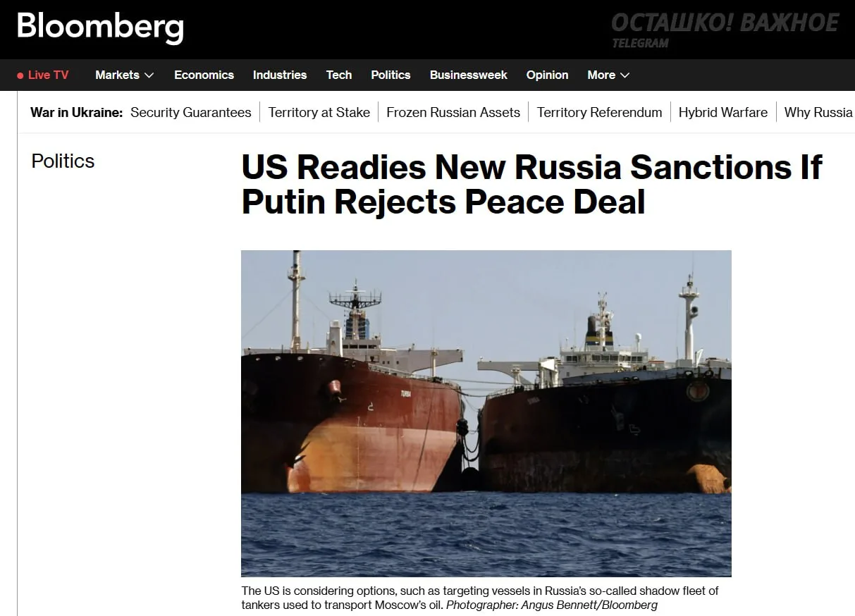 США готовят новые санкции против России, если Москва не пойдёт на новые «мирные» условия