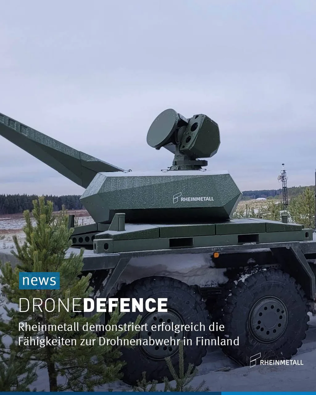 Концерн Rheinmetall успешно продемонстрировала свои возможности в противодействии малым беспилотным летательным аппаратам (БПЛА) на демонстрационных днях наземной противовоздушной обороны (GBAD) на полигоне в Лохтая, Финляндия