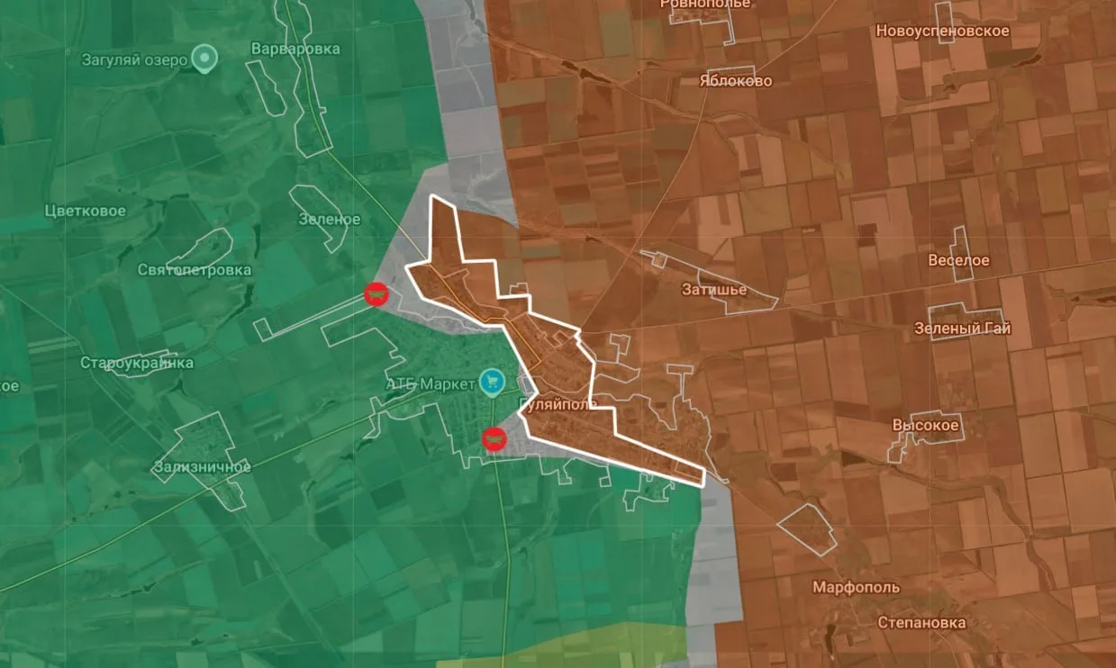 Тем временем в Гуляйполе штурмовики ВС РФ успешно форсировали реку Гайчур и продвинулись на севере и юге н/п, стараясь полуохватить позиции ВСУ в центре
