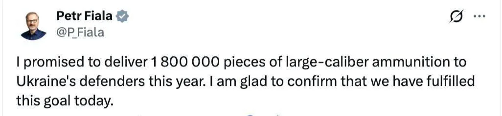Чехия уже передала Украине 1,8 млн боеприпасов, — Петер Фиала