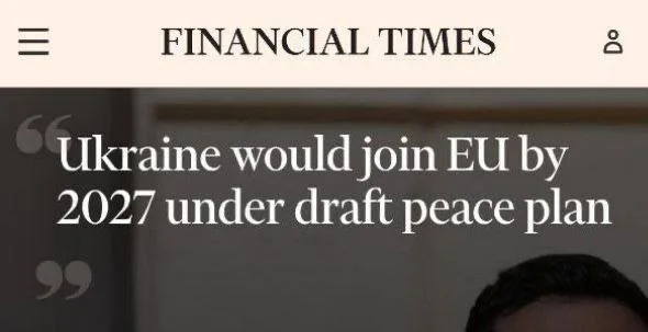 Украинский вариант мирного урегулирования, переданный США, предполагает вступление в ЕС к 1 января 2027 года, — Financial Times