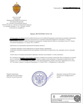 Собственно, на этом сразу и прокололись. С чего вдруг ФСБ обращаться к бывшему директору, а не действующему. Видать, база устаревшая.
