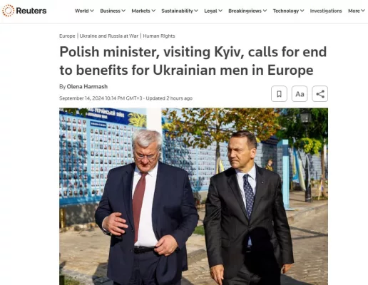 Этим заявлением Сибига поддержал своего польского коллеги Радослава Сикорского, которые ранее призвал прекратить платить соцпособия украинским беженцам в странах Евросоюза.
