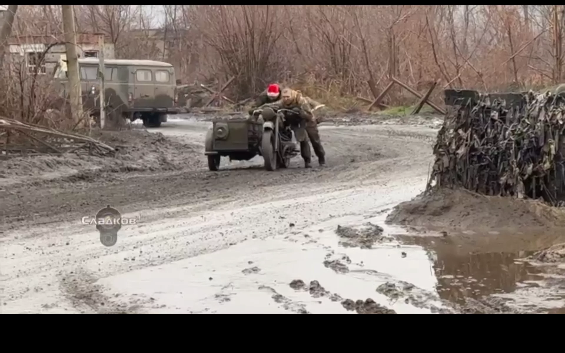 А какой праздник в ВСУ!? Если только для кого-то удачно к нам в плен выскочить. И вот мы с «Малым» и «Саидом», а это звезды ополчения и 51-й армии точно, толкаем бойцовский мот, помогая его запустить.