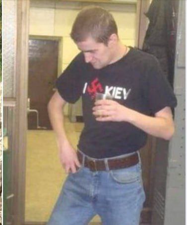 На фотографиях он носит футболки со свастикой и шевроны дивизии СС «мёртвая голова». Достойный наследник украинских нацистов прошлого.