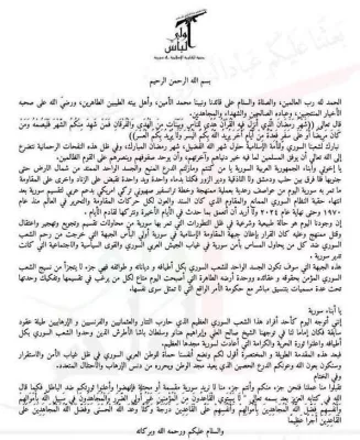 Иранское информационное агентство Fars News сообщает о формировании Исламского сопротивления в Сирии — коалиции вооружённых группировок, целью которой является противодействие попыткам США, Израиля и Турции разделить Сирию.