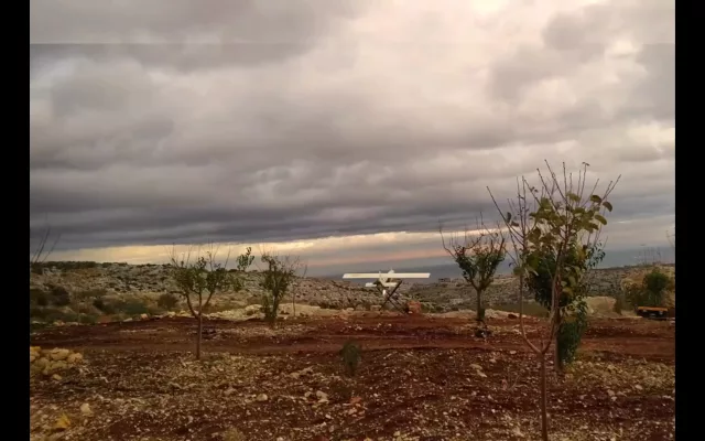 А вот и кадры применения FPV-дронов боевиками «Хайат Тахрир аш-Шам» по аэродрому Квайрес, где был поражен самолёт Л-39, а также танк Т-72.