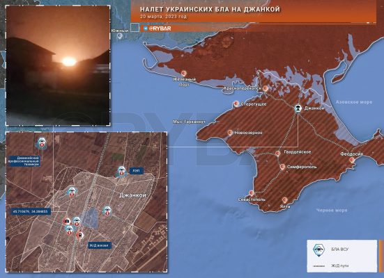 Сегодняшней ночью по полуострову Крым был совершен (https://t.me/rybar/44853) очередной массированный удар украинскими БЛА. Не менее шести БЛА типа «Мугин-5», кустарно оснащенных взрывчаткой, были применены по Джанкою.
