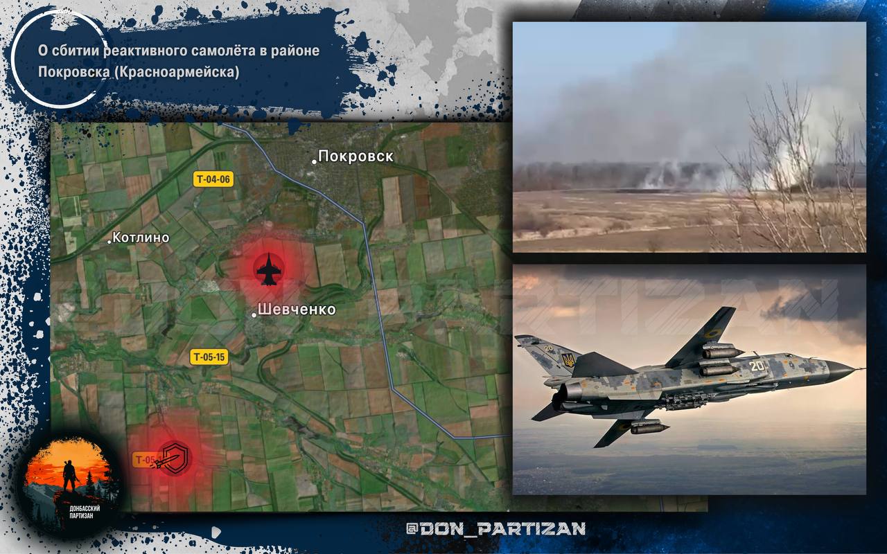🔻На данный момент подтверждён факт сбития истребителя-бомбардировщика Су-24М ВВС Украины в районе с.Шевченко. Учитывая тот факт, что пуск ракеты ПВО был совершён с района с.Новооленовка (временно оккупированная территория ДНР) можно смело говорить о «дружественном огне» — украинская система ПВО сработала по своему же самолёту в т.н. «безопасном районе» при возвращении на базу постоянной дислокации (вероятно аэродром «Авиаторское» в Днепропетровске).