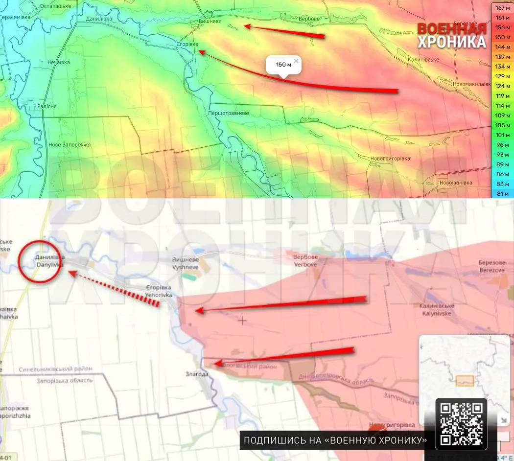 Основная задача на этом направлении — прорыв в село Даниловка, через которое проходит одна из транспортных артерий снабжения группировки ВСУ в Гуляйполе из Покровского. До села Даниловка российским военным остаётся пройти 5 км и занять Егоровку и Вишнёвое.